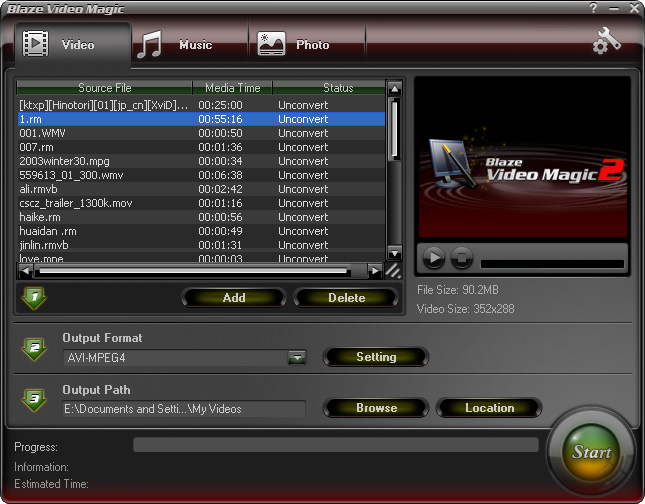 Blaze Video Magic is a powerful but easy to use utility for multimedia file conversion. Expanding your multimedia entertainment, Blaze Video Magic allows you to freely access and enjoy video, music, photo on PC, MP3 player, portable MPEG4 device, PS game player or 3G smart phone. With Blaze Video Magic, you can have a very rich digital entertainment life.